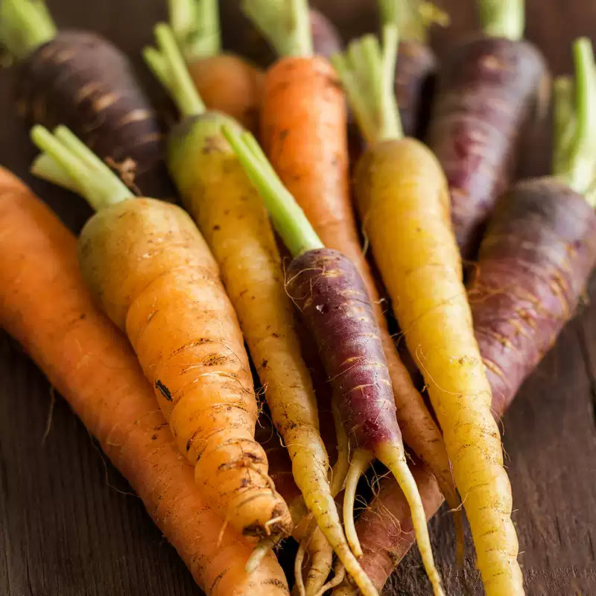 Carrots are a staple in most gardens. They should be, as they are great eaten fresh out of the garden or in soups or casseroles or as a vegetable side dish. They are a great source of beta-carotene and antioxidants, and kids still eat them! Traditionally, carrots were orange and long. Not anymore!