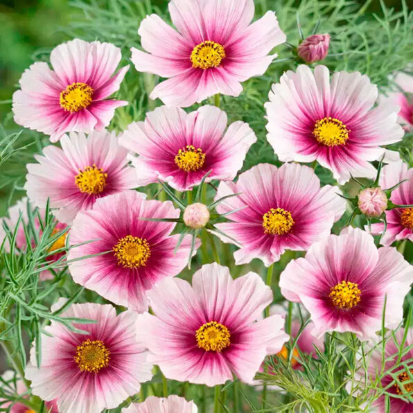Cosmos flowers stand out in any garden with their ethereal beauty and captivating charm. Originating from the meadows of Mexico, these annual blooms have journeyed across the world to become a cherished favorite among gardeners. With their dainty, petal-rich blooms perched atop slender stems, Cosmos sway gracefully in the gentlest breeze, bringing a dynamic and lively presence to your garden.
