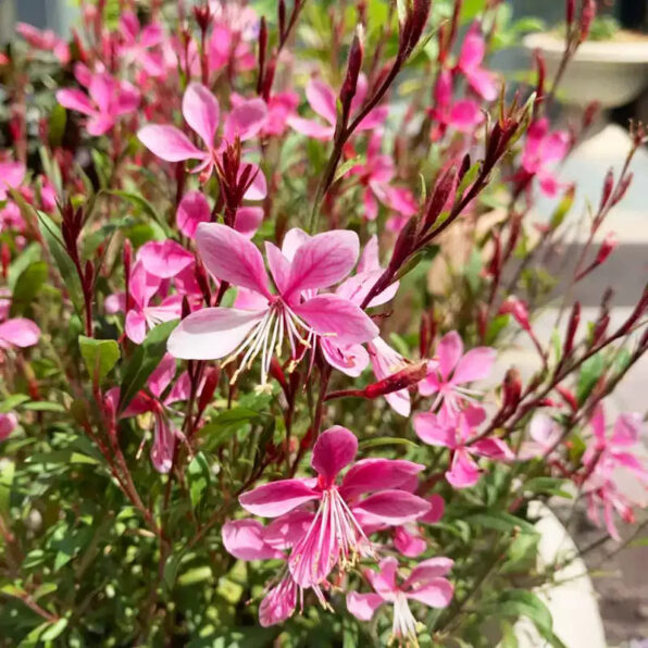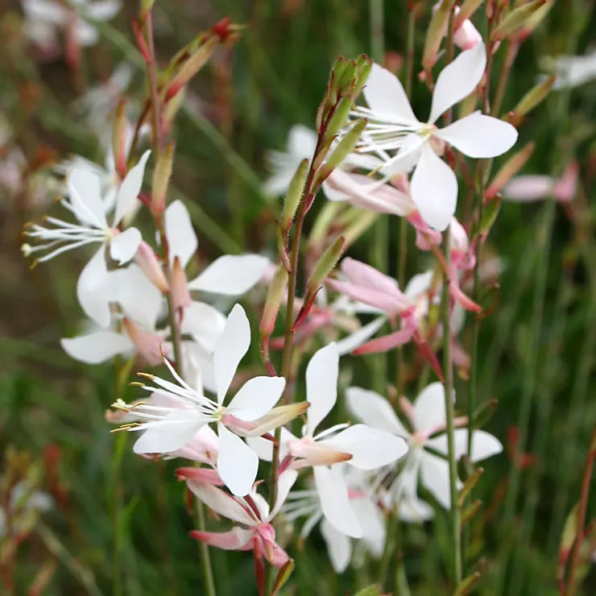 The genus Gaura (reclassified Oenothera early 2000s) contains herbaceous perennials (annuals in colder climates) commonly called appleblossom grass, bee blossom, and wand flower. Bee blossom’s tall, wispy sprays of flowers give them a wild but delicate, see-through appearance.