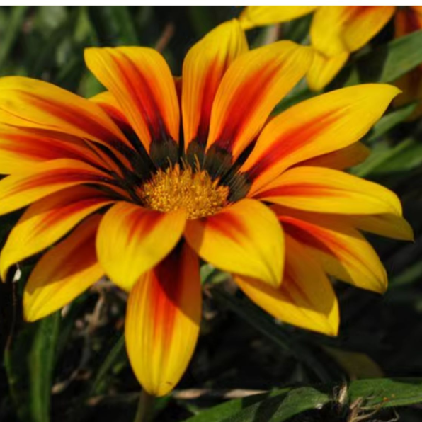 Native to South Africa, Gazania (Treasure Flower) is one of the easiest and most brilliant flowering plants for the sunny garden and containers! Dark green foliage banks sturdy, daisy-shaped blooms that sport all colors, including stripes, rings, and washes.