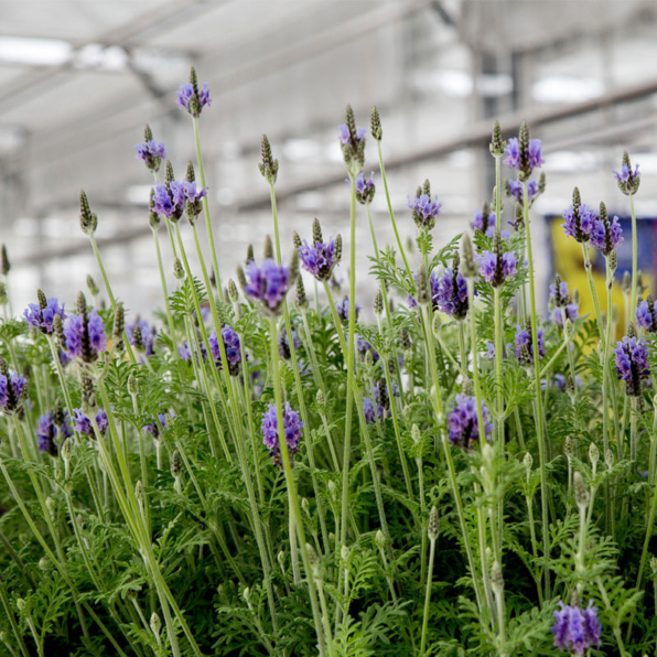 Refreshing, clean aroma. Lavender offers a lovely combination of silvery-gray foliage with blooms in a range of violet shades. Popular for herbal crafts and dried arrangements. Lavender prefers well-drained, somewhat gravelly soil, and suffers in wet, humid climates. As a medicinal herb, lavender is calming to the nerves. The scent of lavender is said to help relieve headaches and nausea and the essential oil is antibacterial and antiseptic. We offer traditional English lavender, which flowers in its second year, as well as Ellagance lavender, which flowers in the first year.