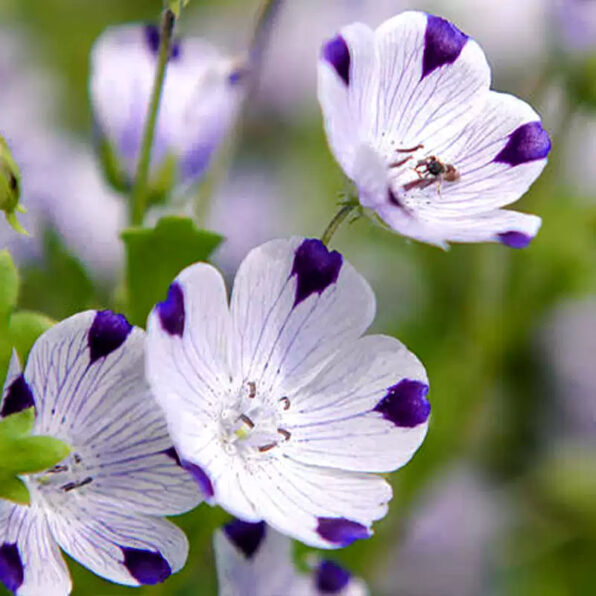 A wildflower native to North America, this buttercup-shaped flower has happily naturalized in other regions around the world. Commonly referred to as baby blue eyes, these delicate blue flowers are hardier than they appear—thriving in nearly all hardiness zones. Eden Brothers offers five varieties of heirloom nemophila, ranging in color from white to dark blue, with some speckles and bicolor combinations in the mix. Plant a nemophila patch and make a home for pollinators in your garden this year!