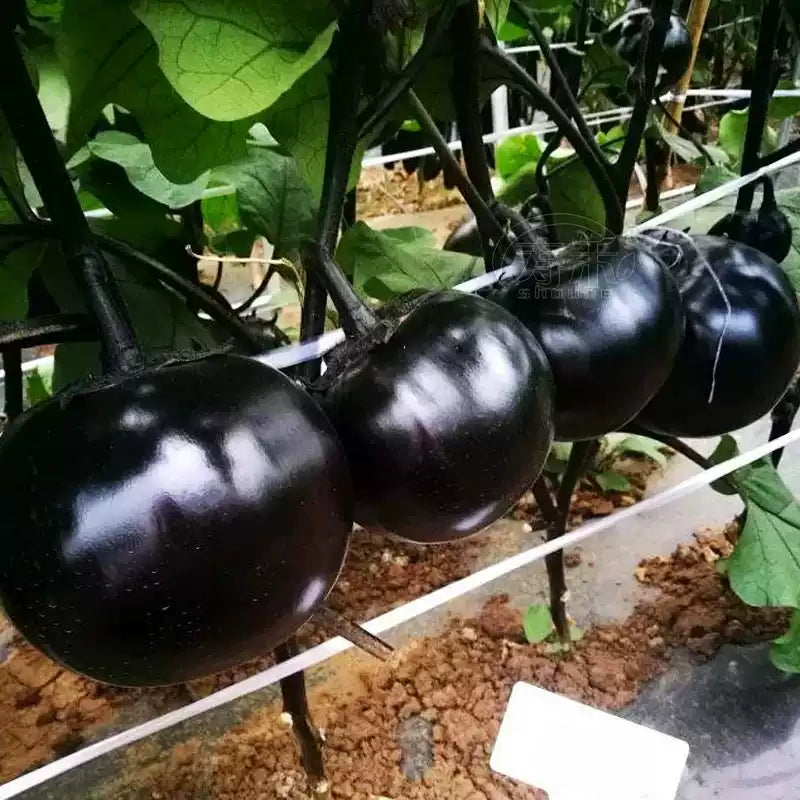 These large, glossy fruits are a deep purple so intense it looks black. They arise in great numbers on plants 21 to 30 inches high—you can expect a dozen or so fruits per plant. That’s a terrific yield from such a compact, easy-to-grow plant. Be sure to stake the plant early in the season to support its bounty of fruit.