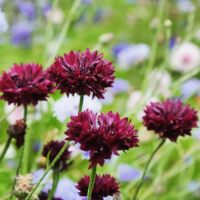 Upright plants produce abundant double and semidouble 1–1 1/2″ blooms. Prefers cool temperatures. Also known as cornflower, garden cornflower, and bachelor’s buttons.