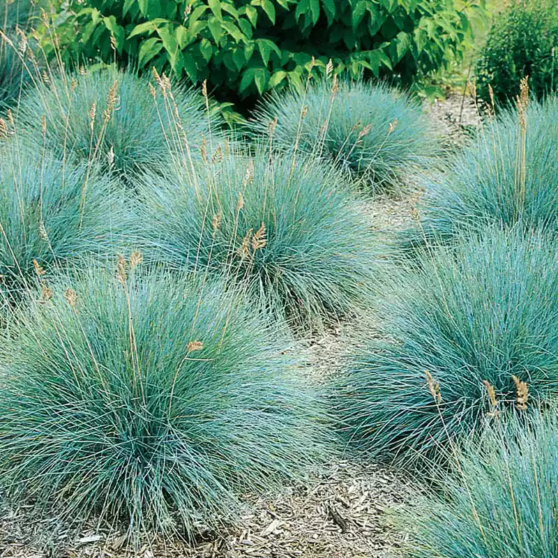 Forming an attractive, rounded 12-inch clump, Festuca glauca is a striking contrast to the greens of the landscape, combining well with flowering ornamentals. Once established Blue Fescue will flourish despite drought, heat, and poor soil. Pest- and disease-resistant, Blue Fescue is truly carefree and long-lived.