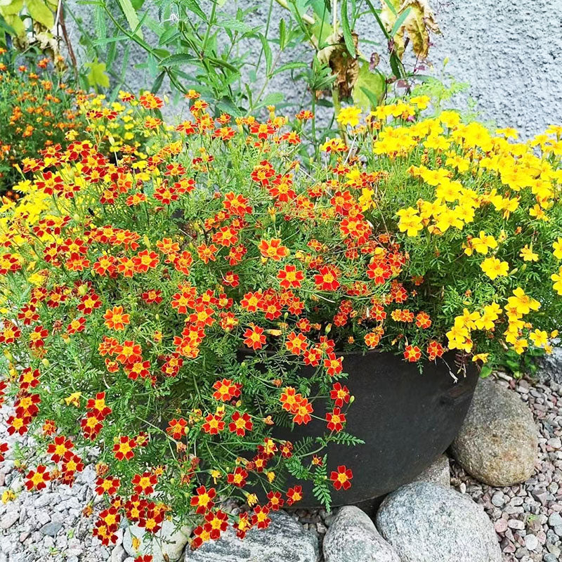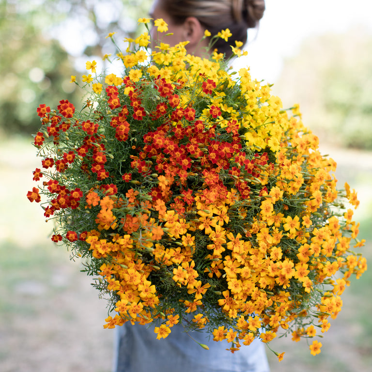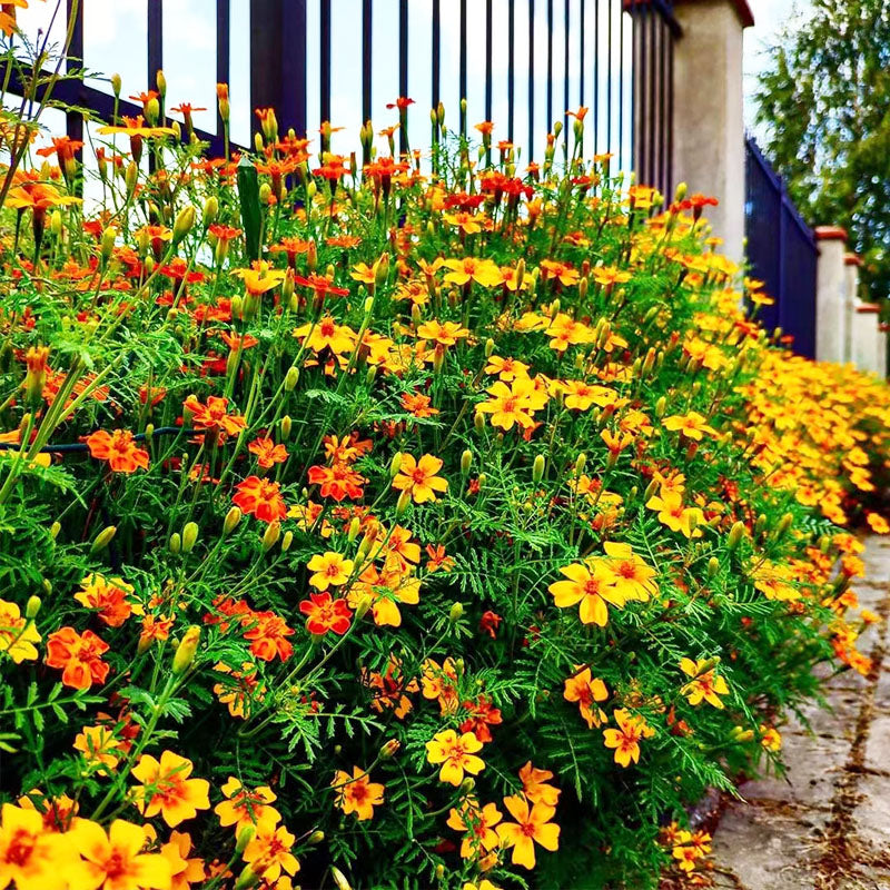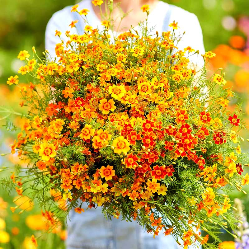 All very uniform in habit and bloom time, these colors are dazzling alone or in a mixed planting. They’re a great choice for beds, borders, and containers of all types, including window boxes. They keep their bright color over a long season, and their high bud count means that you’ll enjoy many flushes of fresh bloom. Superb for edging, they are even effective in vegetable gardens, where they repel nematodes naturally. And where marigolds go, butterflies follow.