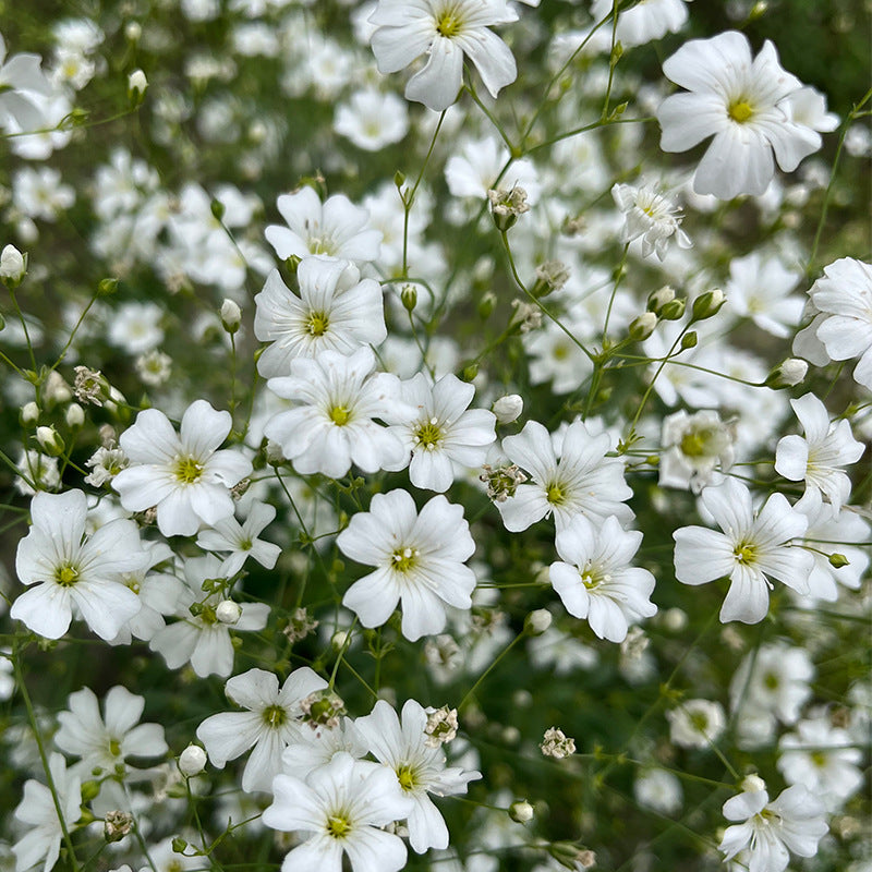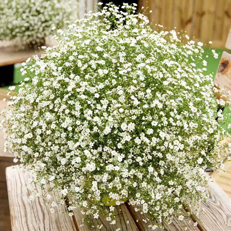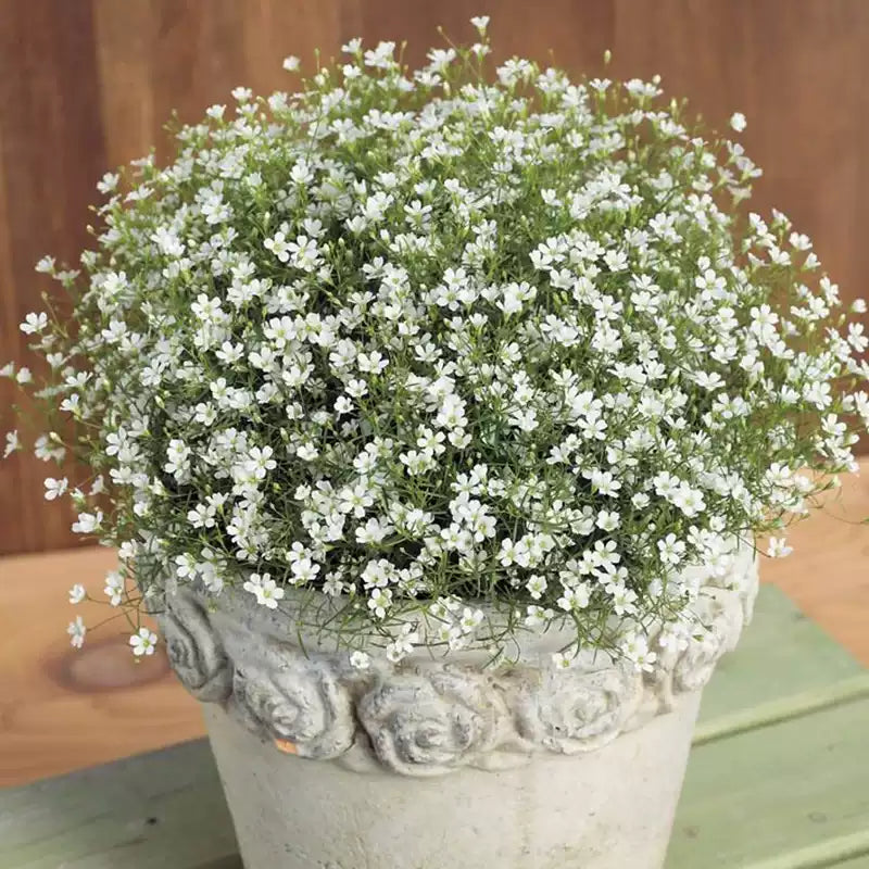 This improved variety of Gypsophila Gypsy White will have your garden sparkling. The blooms on the improved flower are semi-double and larger in size. Each flower is tiny, but there are so many and so closely spaced that they form a cloud of soft color. The Gypsophila Gypsy White Improved is perfect for containers, garden beds, small areas, and has better branching and a better growth habit. This flower has a longer bloom season and is great at tolerating the heat.