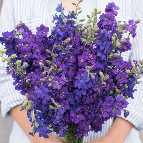 At last, a delphinium that’s petite enough to put in containers yet strong and very heavy-blooming, with double blooms that may repeat. And the best part. This is an open-pollinated seed variety. We throw around the term “breeding breakthrough” sometimes, but it’s really true in the case of Delphina.