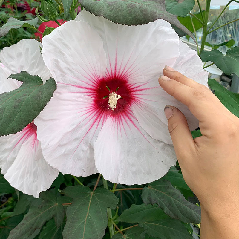 In Mix you get all 4 Luna colors: 3 solids (white, rose, and red) and the fascinating pink swirl, with petals that resemble the blades of a fan. Luna gleams in the late afternoon and twilight garden. It will put you in mind of the luna moth it was named for, and is an excellent choice near the patio or deck where evening entertaining occurs.