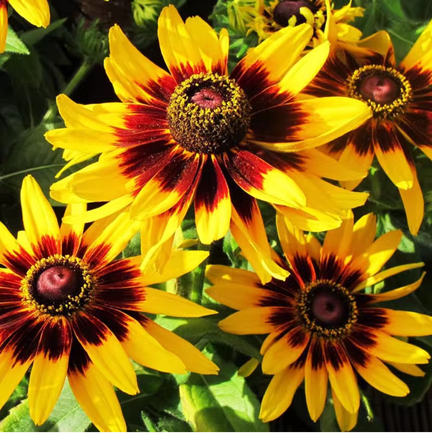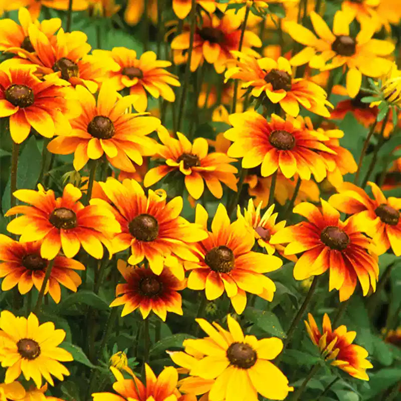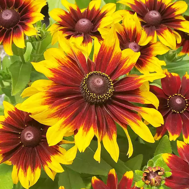 The compact sister of Denver Daisy, Pawnee Spirit Rudbeckia blooms summer through fall. Early, abundantly, and uniformly blooming, Pawnee Spirit sets daisylike 6-inch flowers with golden-yellow rays and a large rich-mahogany center and cone. Borne singly on sturdy stems that will not flop, the blooms make excellent long-lasting cut flowers. Bright and nectar-rich, the flowers attract bees and butterflies to the garden for months on end, and the seed heads that follow offer winter interest as well as sustenance for songbirds, such as American goldfinches.