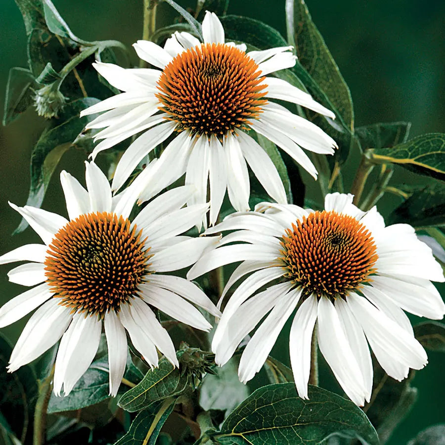 White Swan Coneflower (50 seeds):Â Fragrant white blooms with russet cones.