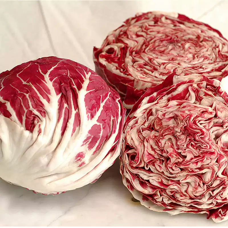 A late-maturing radicchio rosso, originally known as Italian chicory, Vivaldi F1 Radicchio is a taprooted herb, grown as a leafy vegetable. The plant sets dense, round, dark red heads with white ribs, which add color and zest to dishes. Radicchio is especially nice in mixed salads or served as grilled wedges with cheese or nuts and drizzled with a sweet balsamic vinegar. A key food in the healthful Mediterranean diet, radicchio is loaded with vitamin K and is a source of vitamins A, C, E, B2, B3, B5, and B6. It also contains folate, choline, calcium, iron, magnesium, phosphorus, potassium, zinc, copper, manganese, and selenium.