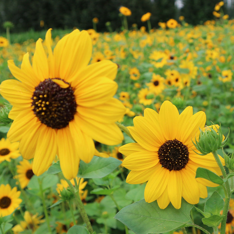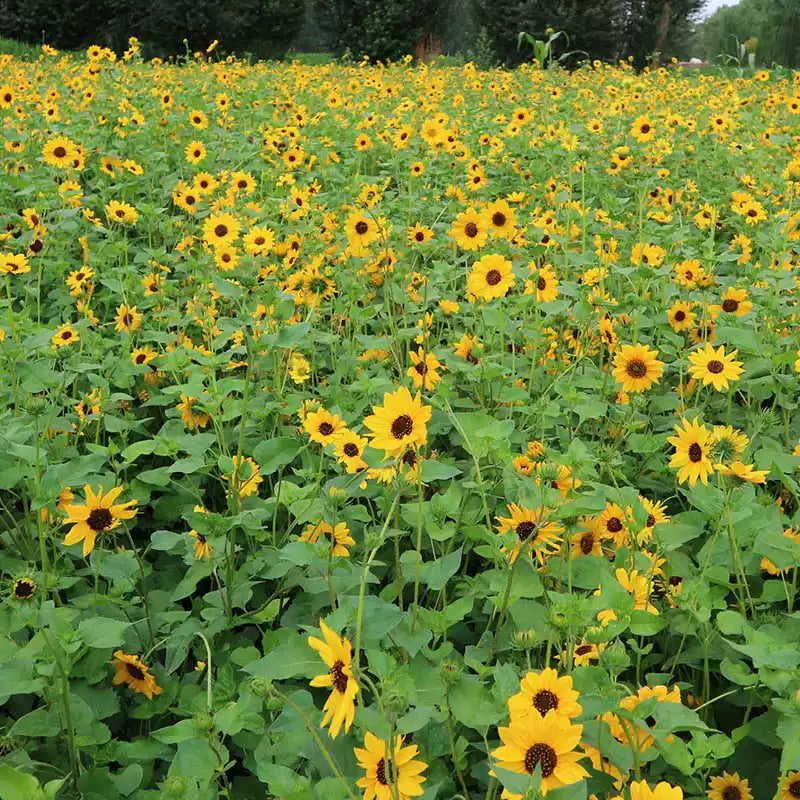 Yellow Dark Center Sunflower Seeds in spring, and in summer, the plant blooms in 4-inch flower heads with bright yellow rays surrounding a dark brown center. Borne in clusters on stiff, course stems, the blooms continue over a long season, up to 12 weeks, and last a long time in a vase. Be sure to cut sunflowers in the early morning to encourage longer-lasting blooms.