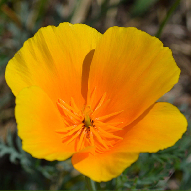 ‘Yukon Gold’ Poppy is a California poppy with brilliant blooms that feature petals of bright golden shades and centers of deeper orange hues. The slightly ruffled double blooms sit above lovely blue-green feathery foliage. This poppy variety is an easy to grow direct sow annual that will bloom from spring through summer. ‘Yukon Gold’ Poppy is spectacular when sown in drifts in sunny borders, but can also be used to fill gaps in the border and in mixed plantings with other annuals.
